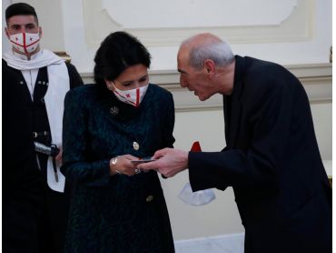 საქართველოს პრეზიდენტმა სალომე ზურაბიშვილმა მახათას მთაზე ივერიის ღვთისმშობლის ხატის სახელობის ტაძრის არქიტექტორი ომარ ნაფეტვარიძე და მხატვარ-მოქანდაკე გია ჯაფარიძე