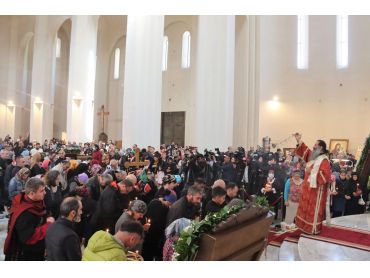 დღეს, 12 მაისს ღვთისმშობლის წილხვდომილობისა დაანდრია პირველწოდებულის ხსენების დღეს, მახათას მთაზე ივერიის ყოვლადწმინდა ღვთისმშობლის ხატის სახელობის მშენებარე ტაძარში წირვა აღავლინა - საპატრიარქოს ტახტის მოსაყდრემ, სენაკისა და ჩხოროწყუს მიტროპოლიტმა მეუფე შიომ. თანამსახურებდნენ ჭიათურისა და საჩხერის მიტროპოლიტი დანიელი, ახალქალაქისა და კუმურდოს მიტროპილიტი ნიკოლოზი, თიანეთისა და ფშავ-ხევსურეთის მიტროპოლიტი მიქაელი და სხვა სახულიერო პირები.